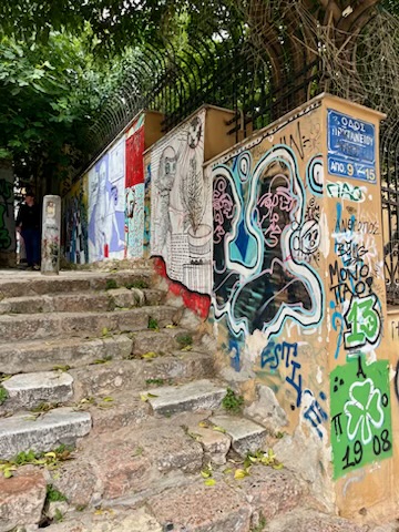 On Friday morning, we woke up first thing and headed out. Our first stop was the changing of the guard near our hotel. It was a small ceremony but neat to watch. I found a precious Greek cafe in one of the quaint neighborhoods nearby so we walked through the cobblestone streets, admiring the flowers and graffiti art all around.