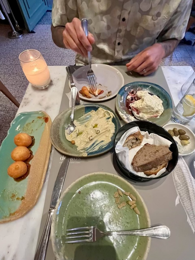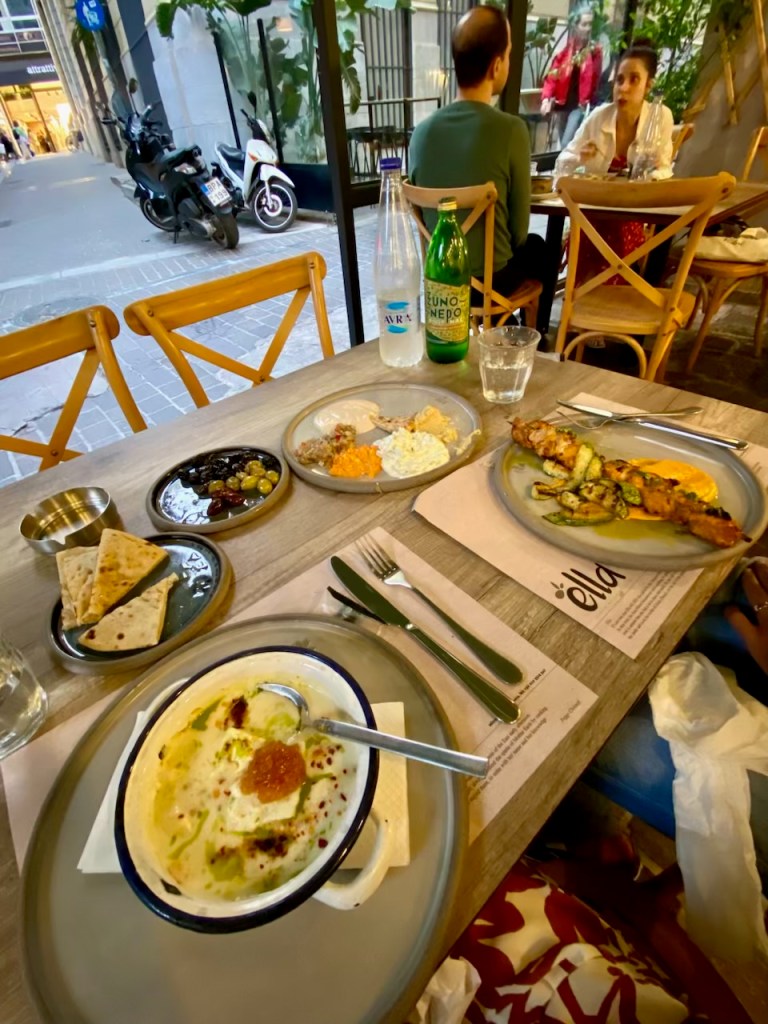 After some rest, we took an evening stroll to dinner. We found a busy busy spot but they were able to get us a table on the sidewalk without a problem. Another amazing meal. The vegetables were out of this world. Truly, the Greek salads are top notch.