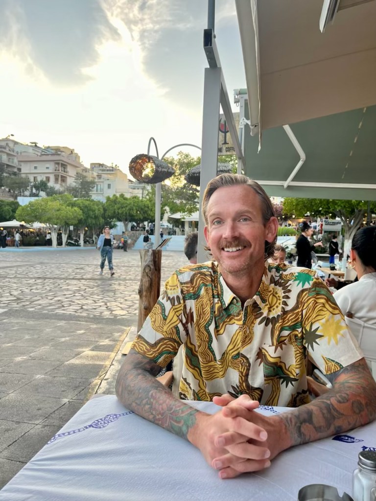 We had done a lot of running around in Santorini and were really looking forward to some downtime in Crete. I knew that the hotel was going to be fabulous and that a friend had hooked us up with an even better room than the nice one we had booked. We got off the ferry, picked up our rental car, and drove to Nikos Aglios. It was late when we arrived but the hotel was gorgeous. We walked into a huuuuge suite overlooking the bay. We were starving so took a short walk to the first open restaurant we found. They were close to closing but the owner was insistent that we stay. We had an absolutely delicious meal.