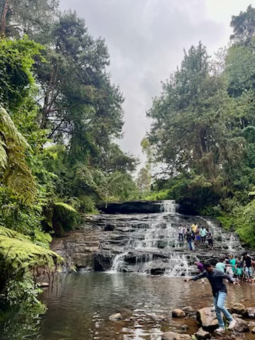 The next morning, we slept in and breakfast was brought to us at the house. Then we were off for a trek to Dolphin’s Nose (none of us knew what to expect but this was one of the local hikes that was reasonably close and not too long). The one lane mountain roads put me right back in Kashmir and our driver had to get out multiple times to direct traffic so that cars could pass on one side, then the other side would get their chance. We drove through a little town and stopped by a little gift shop and restaurant. Right in between the two buildings was a downward path – our trail head. It wasn’t super steep at first but it was very rocky – so there was a lot of bracing and making sure no ankles were turned. We got to the first viewpoint on the hike and all we could see was WHITE. White fog coated anything worth viewing but the fog itself was pretty cool. The hike got steeper and the forest was so eery with the tall skinny trees and dense fog. I made it to Dolphin’s Nose, couldn’t see anything and headed back up.